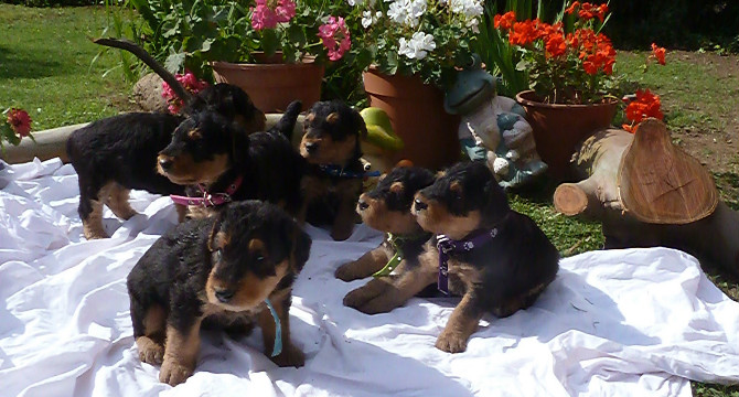 Con "Prisca" (Ginebra Prisca Von Haus Rose) como mamá, y "Kaktus" (Clapton Villa Concepción - Argentina) como papá, hemos conformado nuestro criadero con la finalidad de poder ofrecer los cachorritos airedale terrier con su pedegree correspondiente.